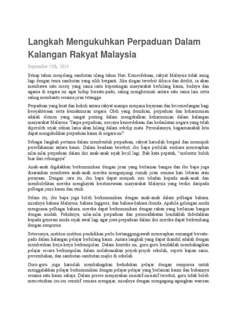Cara Cara Memupuk Perpaduan Kaum Di Malaysia Karangan Wallpaper